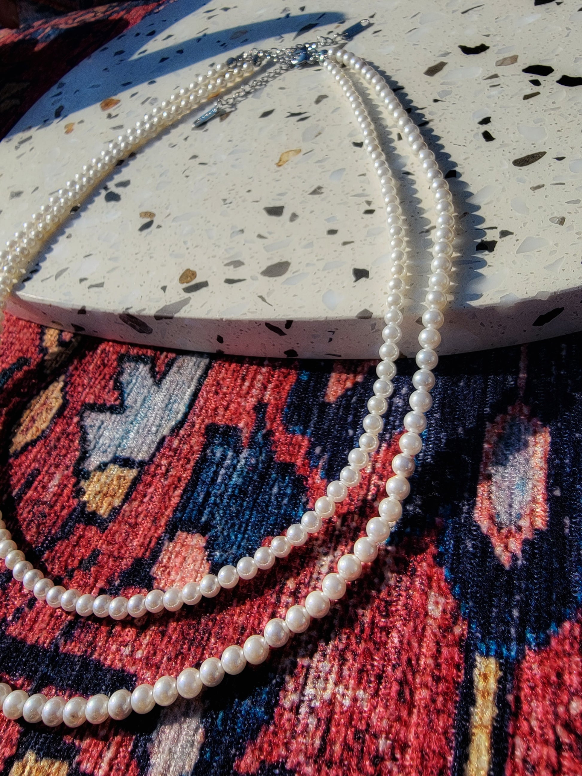 This simple clean cut pearl necklace comes in two lengths. They are sold separately.